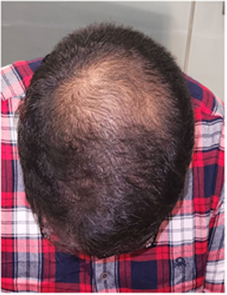 39 year old male suffering from male pattern hair loss for 15 years gained a significant amount of hair with QR678